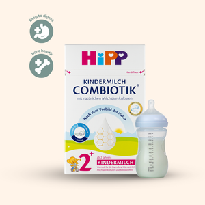 HiPP Kindermilch Combiotik 2+ is a growing up formula designed for children from the second year onwards, enriched with essential nutrients to support their active lifestyle. It complements a family diet, providing well-rounded nutrition.